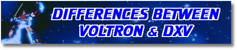 This section, which may not be up and running until after the release of the English-subbed DXV DVDs next year, will cover the major differences between Vehicle Voltron and DaiRugger XV, such as the storyline, character names, and differences between the VV and DXV versions of episodes. |